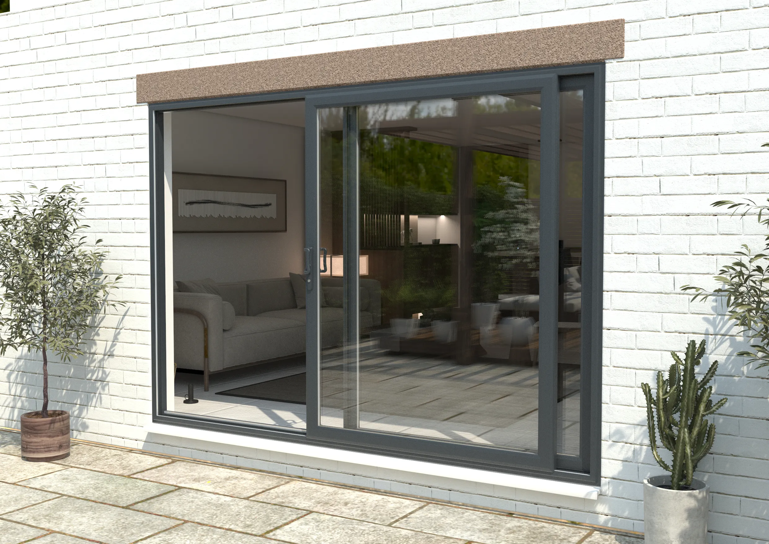 With a market-leading maximum width of 3.5m (2 pane), Syncro is the biggest PVC-U patio door currently available. Additional panes increases the width possibilities.